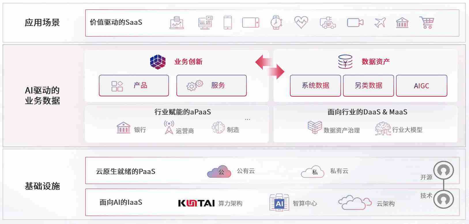 数字时代,,围绕企业数字化转型的关键要素,,okpay钱包数码开创性的提出数云融合战略和技术体系框架,,,着力在云原生、、、数字原生、、AI原生和信创产业上架构产品和服务能力,,,,为处在不同数字化转型阶段的快消零售、、、、汽车、、、金融、、、医疗、、、政企、、、教育、、运营商等行业客户提供泛在的敏捷IT能力和融合的数据驱动能力,,,,构建跨界融合创新的数字业务场景和新业务模式,,,助力企业级客户建立面向未来的核心能力和竞争优势,,全面推动社会的数字化、、、智能化转型升级。。
